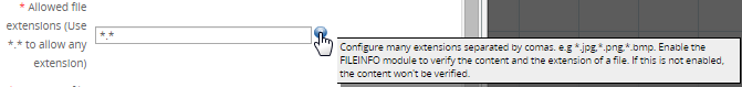 In order to use this feature, the fileinfo extension must be enabled. This extension not only verifies the extension of the file, but also ensures that the extension matches the file's contents, so that the user cannot upload a dangerous file (for example, when an .exe file has been renamed with the .jpg extension):