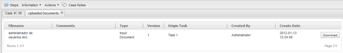 A dialog box will appear with a list of the Input Documents and attached files for the case. To view a document, click on its Download link on the right hand side, so it can be downloaded and opened on the local computer.