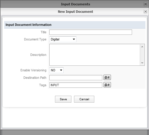 • Title: Enter a title to identify the Input Document.