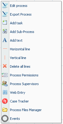 To start designing a process and adding elements to the Process Map, right click anywhere in a blank area on the map and select an option from the menu.