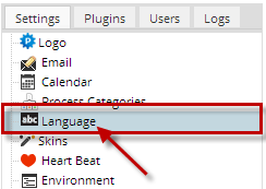 After downloading the translation file, then login to ProcessMaker as the "admin" user (or any user with the PM_SETUP_ADVANCE permission in her role). Go to ADMIN > Settings > Languageto see a list of installed languages.