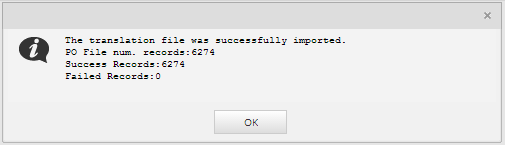 When done importing the language, a message box will indicate how many translation phrases were successfully imported.