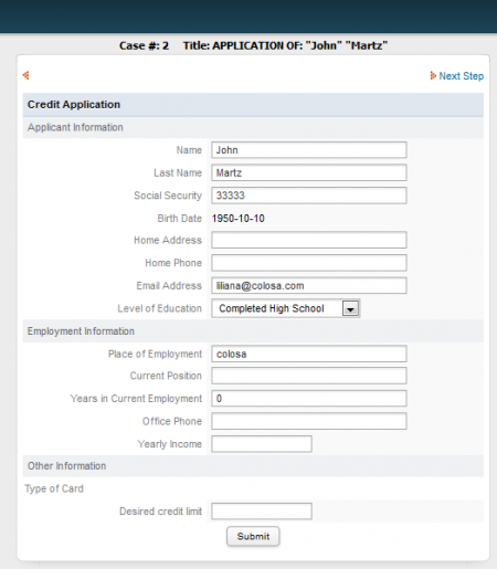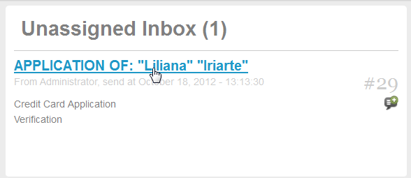 Shows all the incoming cases. This is useful because users can choose to only see cases that require further action. By clicking on the name of the Dynaform, the next step will be displayed allowing users to continue the case: