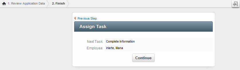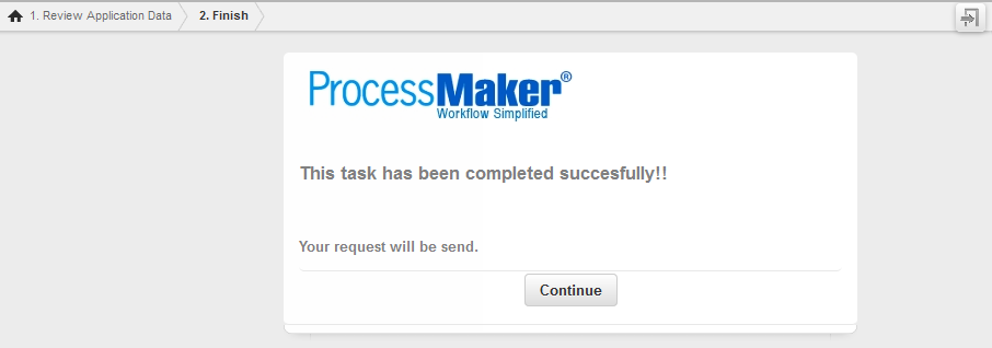 - Once the user completes the assigned task, a dialog box will appear indicating that the case is routing to the next task or the process has completed: