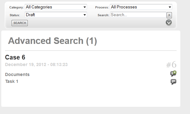 Once the search is configured, click on the Search button. For example, when searching by Draft status: