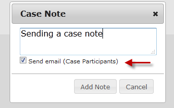 User who add a case note can send an email to all participants of the case to notify them of the new case note.