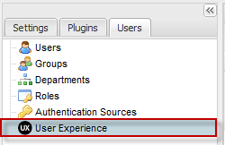 Click on the User Experience option in the sidebar to display a list of users and their user experience setting: