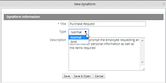 - Type: The type of DynaForm, which can be either "Normal" or "Grid".
