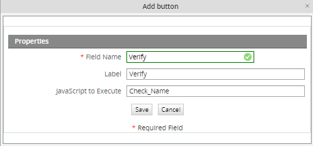 - Button. Add a button to the DynaForm. The functionality of a button has to be added with custom JavaScript code.