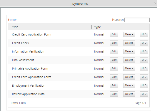 Click Save to create the new DynaForms and return to the list of available DynaForms for the process. Click Save and Edit to create the new DynaForm and immediate begin editing it in theDynaForm Editor.