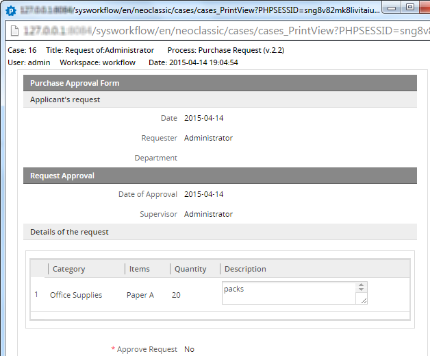 - If clicking in Cancel button, Dynaform information will be saved with the last changes, if the data were added on the Dynaform you want to print without submitting it, information won't be saved and the Dynaform will be printed without those changes.