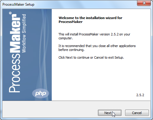 Click on Next to begin the installation of ProcessMaker.