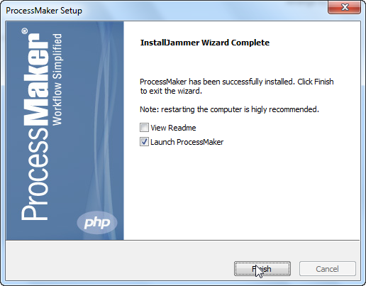 View Readme: Check this option to see the "Readme" file for ProcessMaker.
