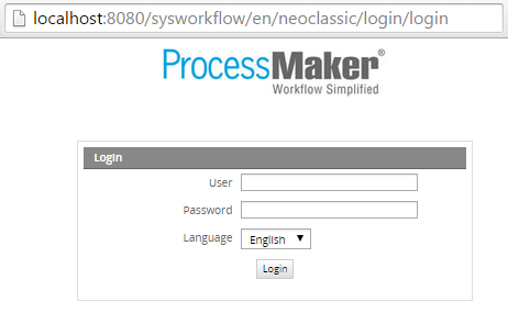 The web browser should then redirect to the login screen at:http://localhost/sys/en/neoclassic/login/login