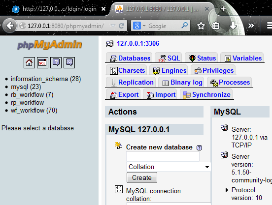 ProcessMaker uses 3 databases in MySQL for each workspace. The databases can be easily examined using phpMyAdmin, a graphical, web-based tool. To see the databases used by ProcessMaker, enter the following URL in the address bar of a web browser: