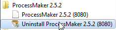 To uninstall ProcessMaker, in the Windows menu, go to Start > All Programs > ProcessMaker 2.X.X > Uninstall ProcessMaker 2.X.X