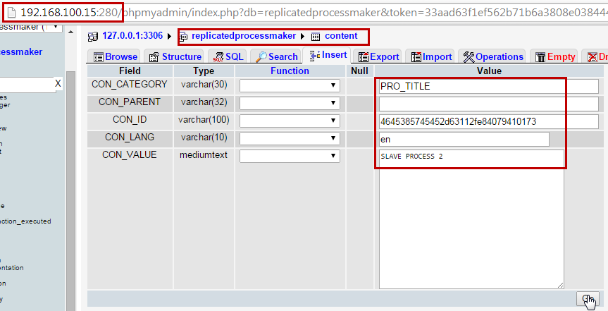 As this was a clean installation of ProcessMaker 2.8, only the database wf_workflow was replicated, let's add the second connection: