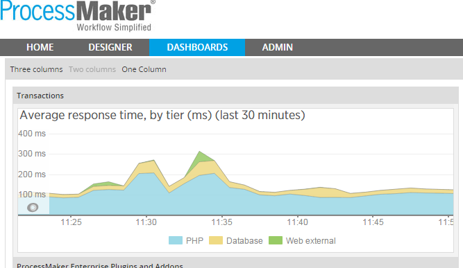 The New Relic plugin allows ProcessMaker to have a real time monitoring where users can determine what is happening on their systems in response to performance issues or problem reports; in addition, it helps to find bottlenecks that some applications or systems may have.