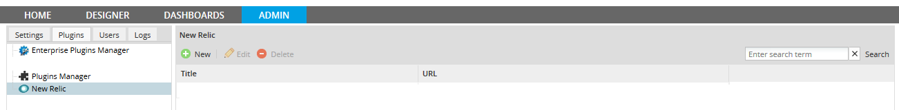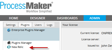 • The plug-in New Relic will add an option inside ADMIN > Plugins option: