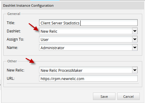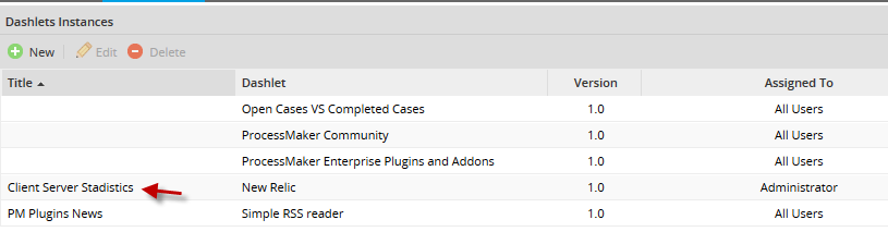 Once the New Relic dashlet was created, it will list on the Dashlet Instance: