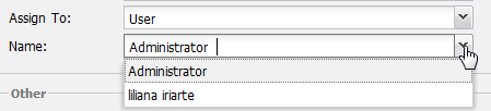 • User: This option allows the view only to one user. If this option is selected automatically all users created inside this workspace will be listed on the Name field: