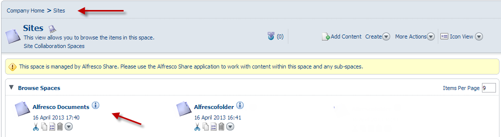 - Go to Alfresco environment, and look for Alfresco Documentation folder by going inside Company Home/Sites path: