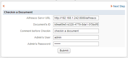 - Comments: comment while checkin a document in Alfresco.