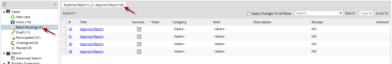 Next to the Batch Routing option the number of cases to derive are displaying, in the case of the example cases to derive are 4, also a tab is added for each process which has cases to derive in batch.