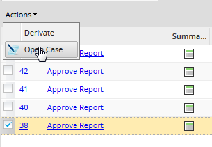 To derive cases in batch, just select the case or cases by marking the checkbox next to the number of the case and then click on "Action" and select "Derivate" option