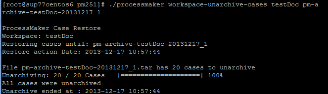 Some ProcessMaker Administrators prefer to use command line to execute commands, that's why the process to unarchive cases can be executed using a ssh client (eg. Putty). The procedure to unarchive cases is the same as the one you use to archive cases.