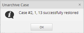 By accepting cases restoring, the following window confirmation appears with the information of the cases restored: