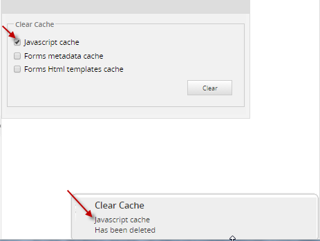 After clearing ProcessMaker's compiled cache, it is strongly recommended to clear web browsers cache which will access ProcessMaker, so they will display the new interface dialogues and DynaForms. In Internet Explorer, press F5. In Mozilla FireFox, press CTRL+F5.