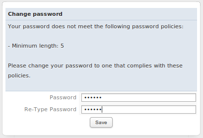 Enter a new password and then retype it a second time, then click on Save. At the next login, use the new password.