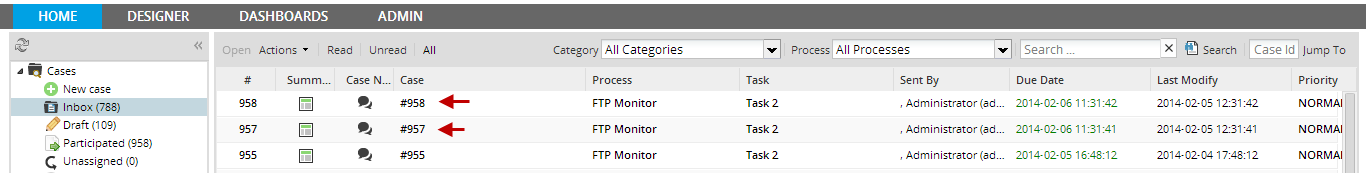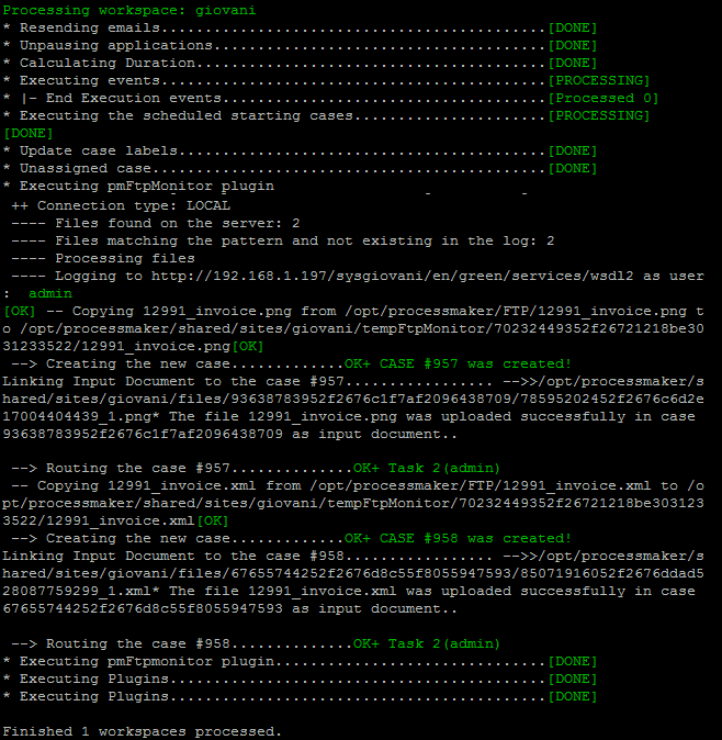 Step 6 - Execute cron.php: Execute cron.php to start cases for each file uploaded to the monitored directory: