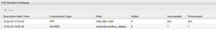Click on the View icon, to see a list of execution times and the number of cases which were created.