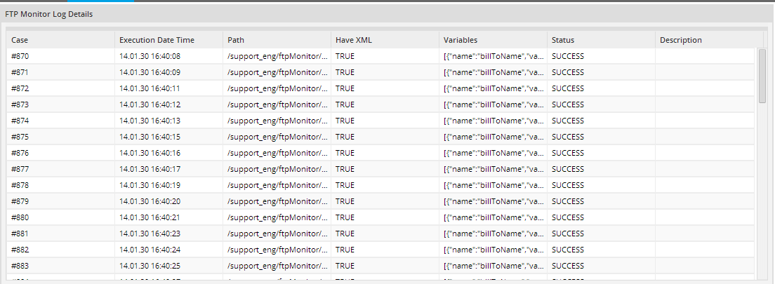 The FTP Monitor Log lists how many cases which were initiated each time cron.php file was executed. To see the log, go to ADMIN > Logs > FTP Monitor Log: