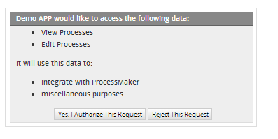First register the application in ProcessMaker, in order to request the access token, which in this example will be used to obtain access to the ProcessMaker Inbox list. Login to ProcessMaker as any user, then redirect the web browser to the following URL: