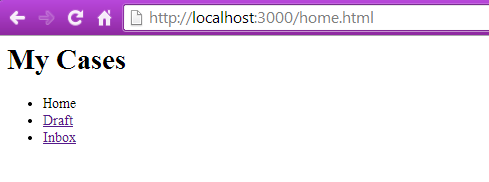 Then, create the caselister/cases.html file which displays links to see the Inbox and Draft cases for the logged-in user: