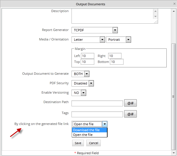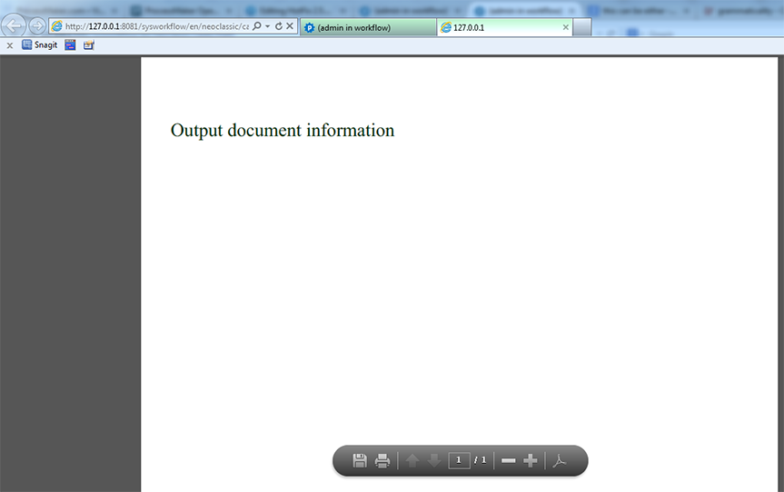 When an Output Document is generated during the execution of a process, this can be either opened inside the same browser or it can be downloaded in the local computer.