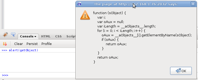 The alert() function can also be used to see the source code for a function: alert(function-name)