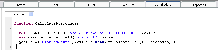 After editing the code, it can be checked by simply switching to the Preview tab. The new JavaScript code will immediately execute upon displaying the form in Preview mode (even if the DynaForm has not yet been saved).