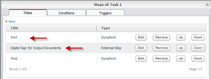- Assign the Dynaform into the Task 1 and also the External Step which is generated automatically when the plugin is installed and activated: