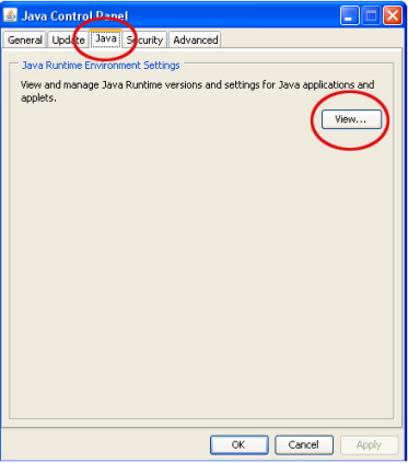 Tip: The installation settings can be managed on the client PC by going to “Control Panel” and double-clicking on Java go to Control Panel look for the java icon, the Control Panel of Java will open, choose JAVA tab and then View: