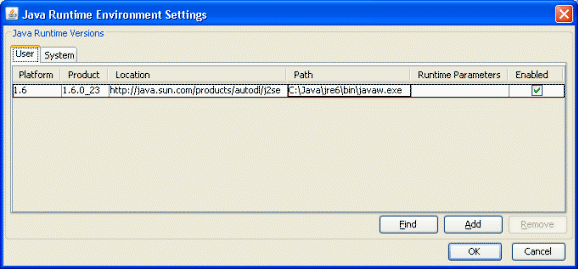 The Java Runtime Environment Settings window will appear, check if the version is enabled and where JAVA was installed.