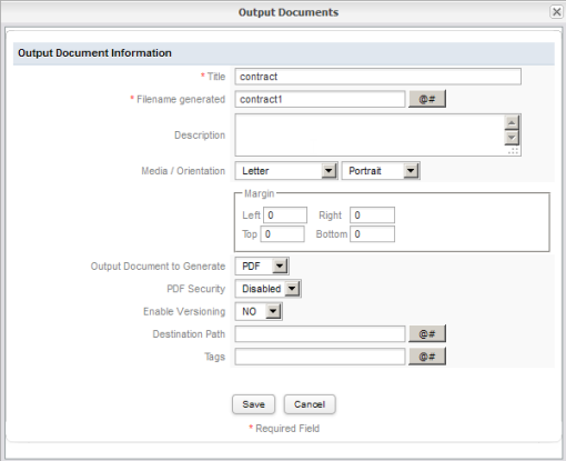 - Edit the Output Document to add the dynaform and signs variables and click on Save: