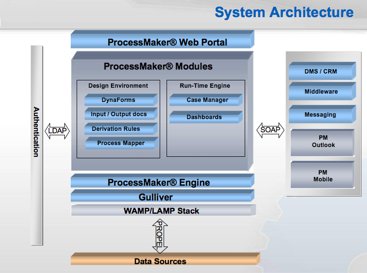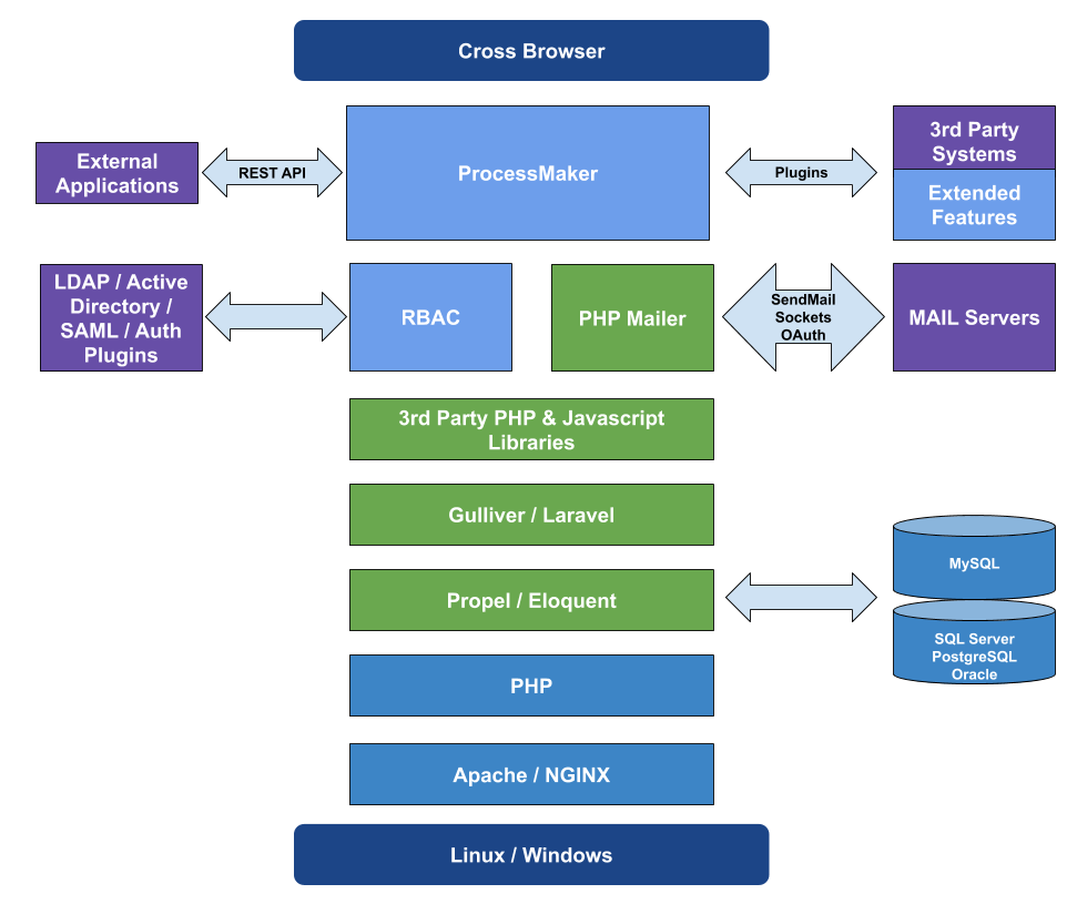 • ProcessMaker is designed on the LAMP / LEMP / WAMP stacks: