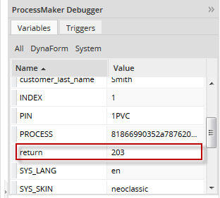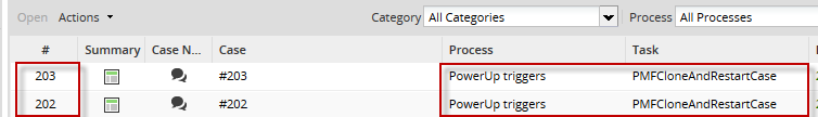 When checked in the the ProcessMaker debugger, a new case, whose case number is 203 was created: