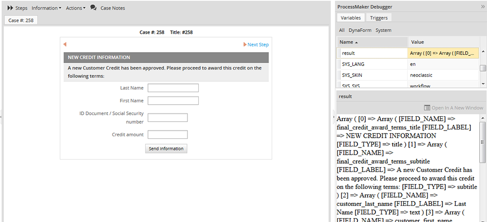 Step 2: Assign the trigger to fire before the DynaForm and execute a case. The result will be: