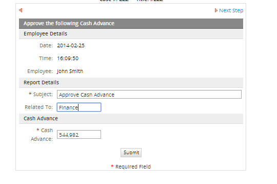 3. When executing a case, change the information in the DynaForm by changing the name of the user from "John Smith" to "John Meyer":