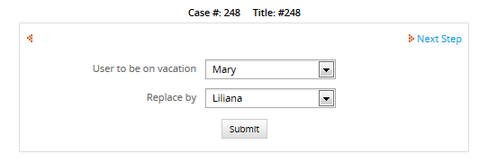 Then, execute a case, in the first field choose Mary Walker, since she will be the person to be on vacation and she will be replaced by Liliana Iriarte, user to have chosen on the second field: